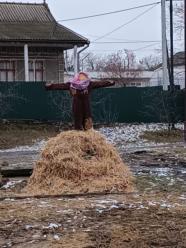 o Чучело, сделанное из соломы и одетое в женскую одежду, символизирует зиму.