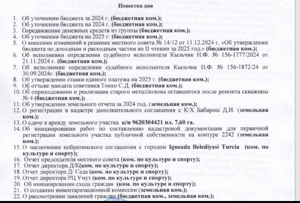 Уведомляем Вас о том, что 3 февраля 2025 года в 11: 00 часов в зале заседании примэрии состоится заседание местного совета. Данное заседание является открытым. На фото Вы можете ознакомиться с вопросами, которые будут рассматриваться на совете.