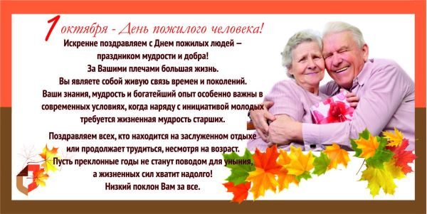 Дорогие наши ветераны! Бабушки и дедушки! В этот особый день мы от всей души хотим выразить вам свою глубокую благодарность за все, что вы сделали для нас. Ваша мудрость, опыт и доброта – бесценны. За плечами у каждого из вас – целая жизнь, полная ярких событий, достижений и преодолений. Вы – живая история нашей страны, и мы гордимся, что можем учиться у вас. Пусть ваши дни будут наполнены теплом, заботой близких и приятными воспоминаниями. Желаем вам крепкого здоровья, долголетия, благополучия, и чтобы каждый день приносил радость и улыбки!