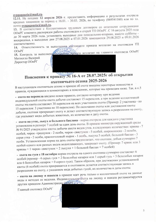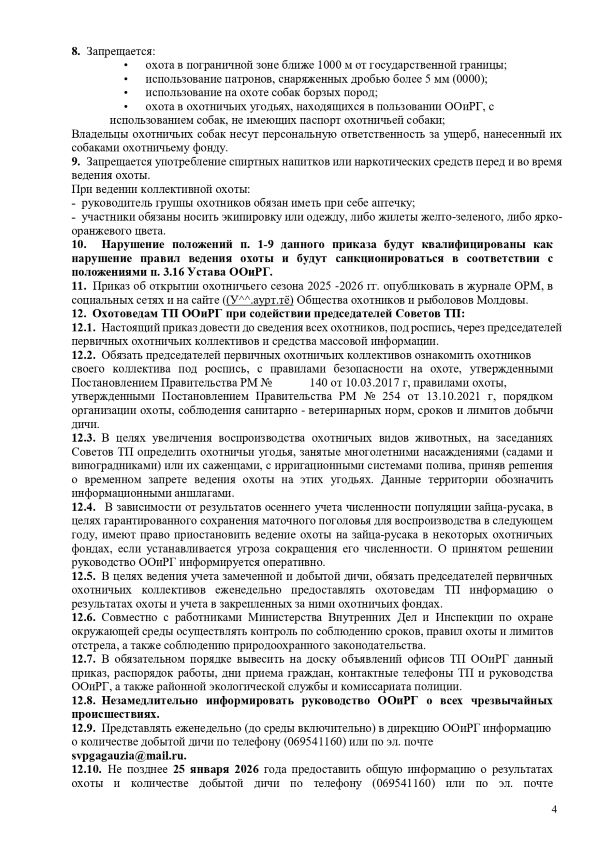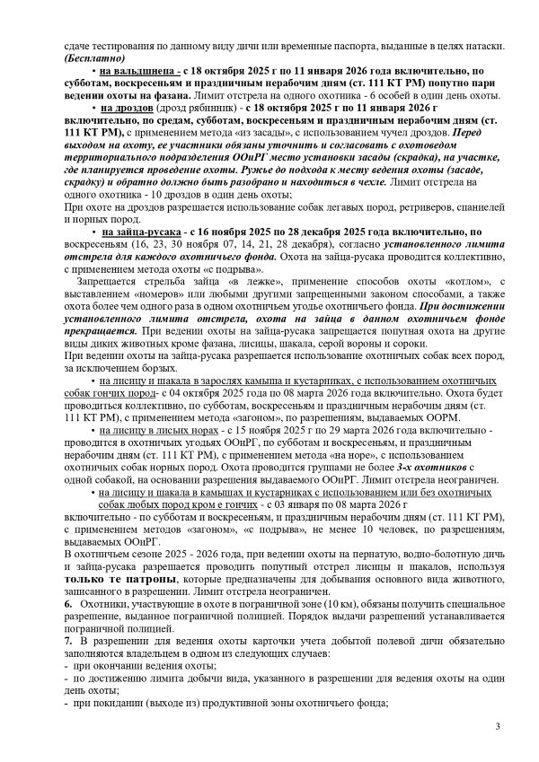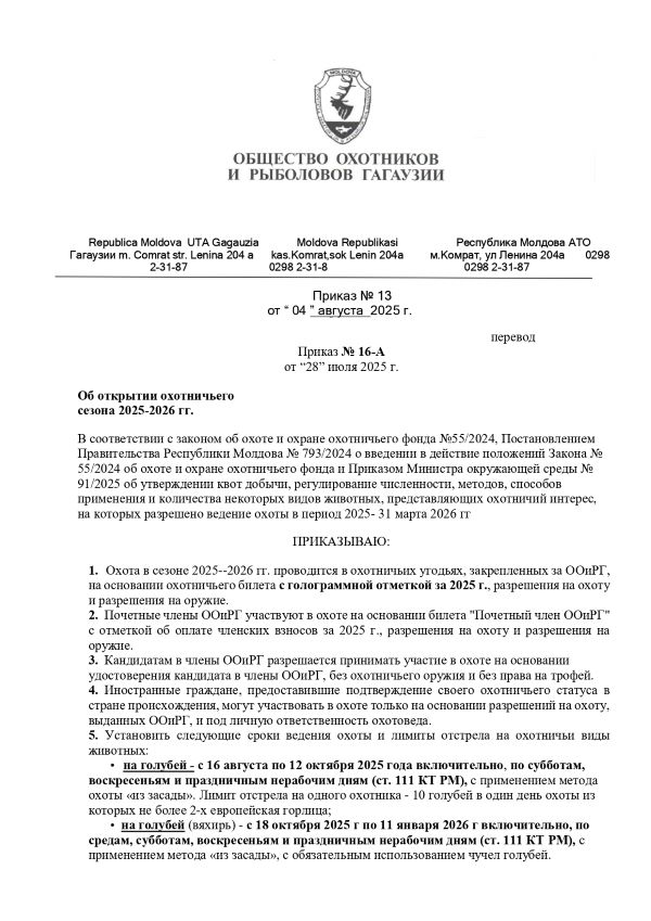 Внимание! Приказ № 16-А об открытии охотничьего сезона 2025-2026 гг.