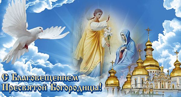 Поздравляем Вас с Благовещением Пресвятой Богородицы. Всем сердцем желаем чувства лёгкости и свободы, ощущения уверенности и вдохновения. Пусть каждый день приносит благие вести. Пусть каждый миг дарит благодать и уют. Желаем крепкого здоровья, сильной веры, долгой жизни, взаимной любви и доброго счастья!