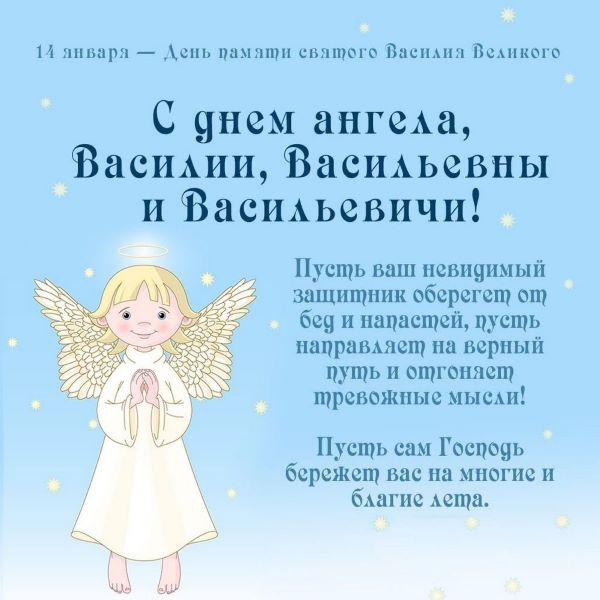 Уважаемые Василии, Васильевны и Васильевичи, от всей души поздравляем Вас с Днем Святого Василия! Желаем, чтобы в Вашей жизни всегда было место для добра, радости и надежды. Пусть все Ваши мечты сбываются, а рядом будут верные друзья и любящие близкие.
