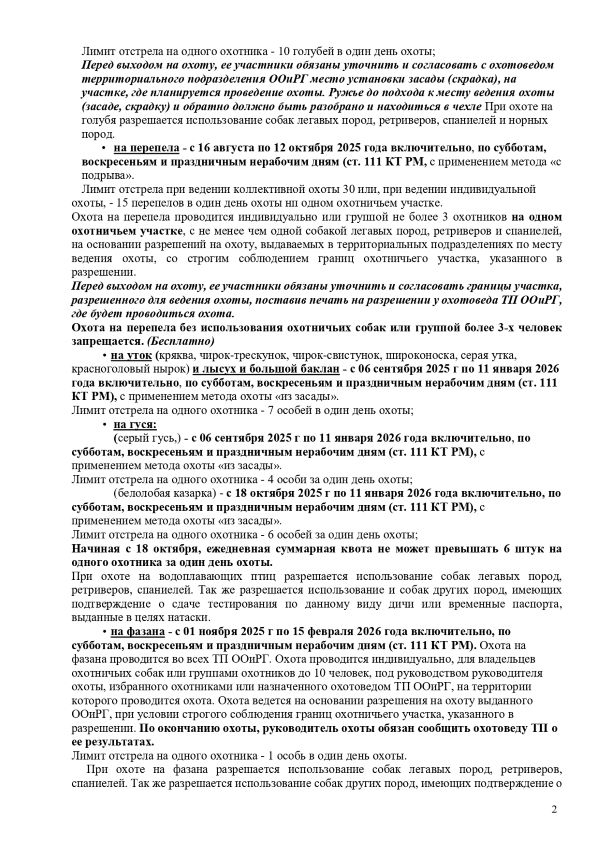 Внимание! Приказ № 16-А об открытии охотничьего сезона 2025-2026 гг.